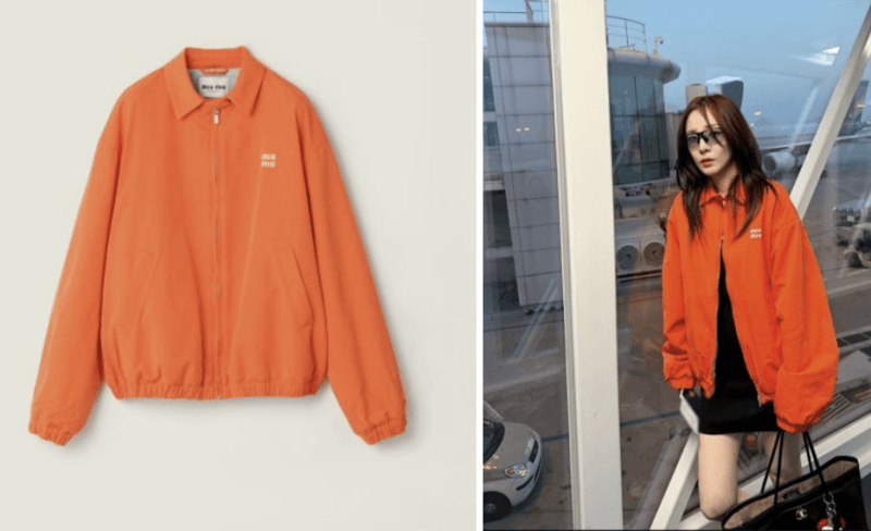 이날 산다라박이 착용한 아우터는 장원영 잇템으로 대중에 잘 알려진 패션 브랜드 '미우미우'(Miu Miu)의 워시드 포플린 블루종 재킷으로 추정된다. 해당 제품의 가격은 국내 공식 홈페이지 기준 465만원이다. 오버핏에 가슴 부분의 선명한 미우미우 로고 자수가 특징이다.